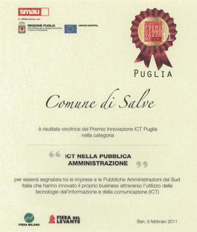 Comune di Salve premiato con il "Premio ITC Puglia" per le Pubbliche