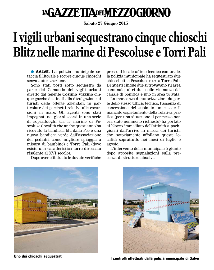 Articolo della "Gazzetta del Mezzogiorno" del 19 Luglio 2015